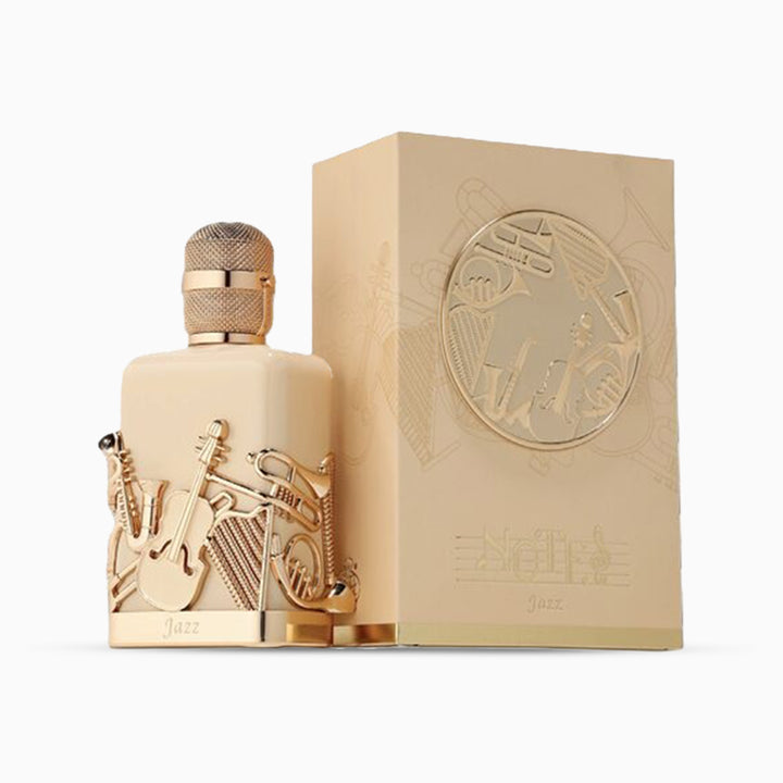 Notes Jazz Fragrance World EDP 100ml is a sophisticated and unisex scent that tells a tale of elegance, warmth and a calm confidence. It starts with a smoky blend of saffron and spice, making a smoky but sweet flavor. When it cools, the fragrant scents from jasmine leather and ylang-ylang reflect in a lavish, rich center that's delicate and aromatic. It's where the scent truly shines with the combination of vanilla, tobacco and sandalwood and Olibanum blend to create a scent with a rich smokey scent that is soft, woody and relaxing. It's perfect for both colder nights and warm, comfortable days. Jazz is lightweight enough to wear every day, but distinct enough to make an impression that will last forever. Inspired by the tempo and intensity of jazz This scent evokes the spirit of refinement in each spray.